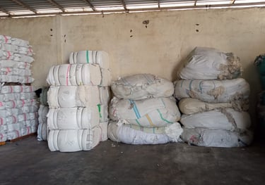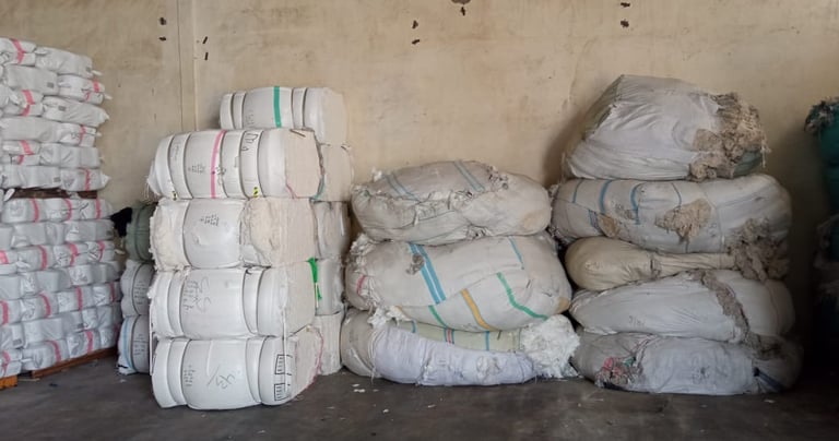 Selected textile waste is processed into quality cotton fiber that can be used in various applications such as mop yarn, mattress filling, pillow, and toy stuffing.
